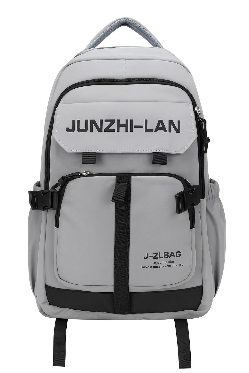 This JUNZHI-LAN J-ZLBAG is a sleek, functional, and modern backpack designed for everyday use. Crafted in a stylish light gray tone with black detailing, it combines durability and minimalist aesthetics. The bag features multiple compartments, including a front flap pocket, dual side pouches, and secure zippered sections for organized storage. Its adjustable shoulder straps ensure comfort, while sturdy buckles add extra security. Perfect for students, travelers, or professionals, this backpack embodies practicality with a contemporary design — ideal for carrying essentials with ease and style.