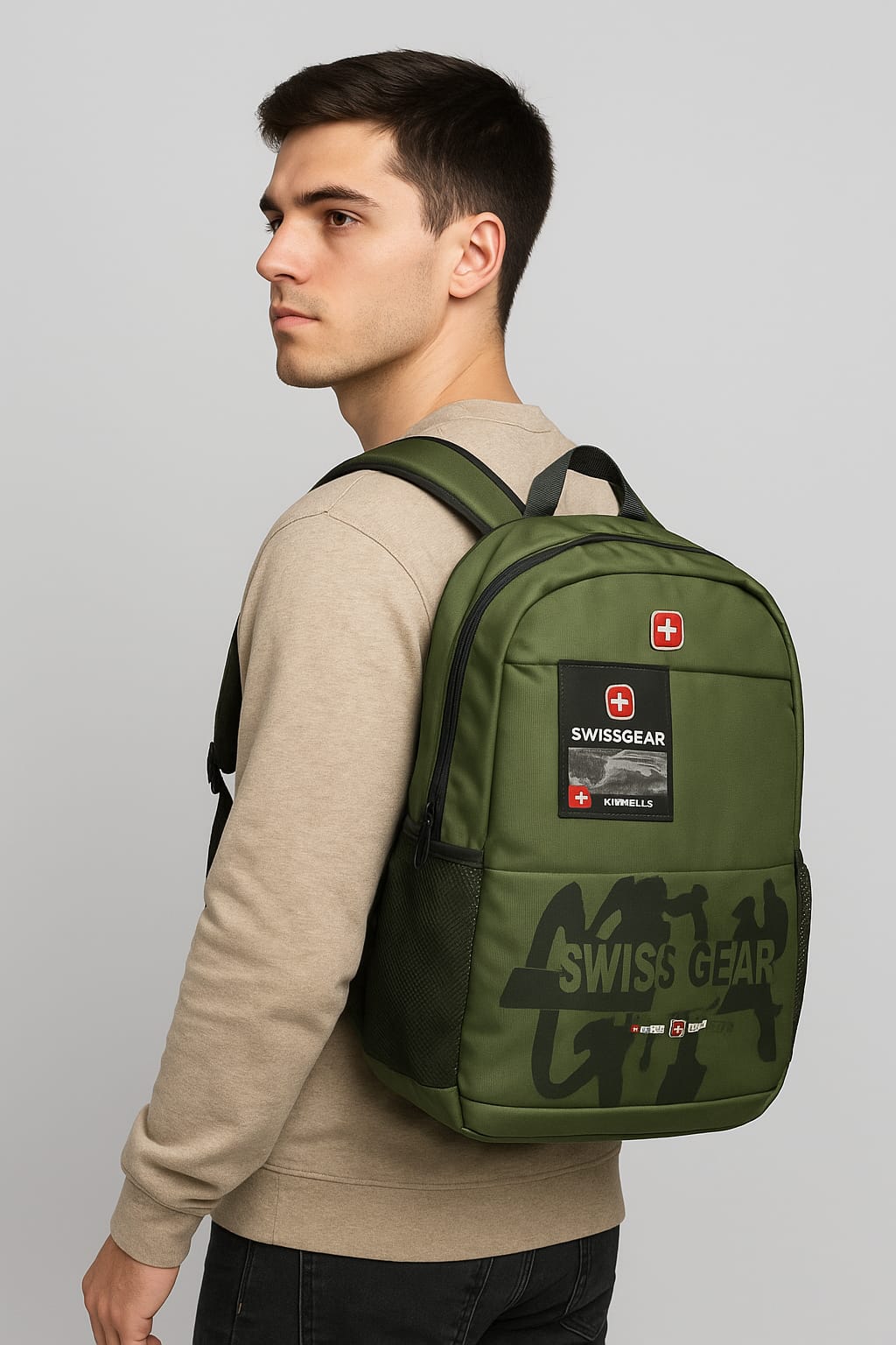 This is a vintage-style canvas tote or duffle bag from the brand SWISS GEAR. The design has a distinctly classic and utilitarian feel, reminiscent of military or workwear gear.