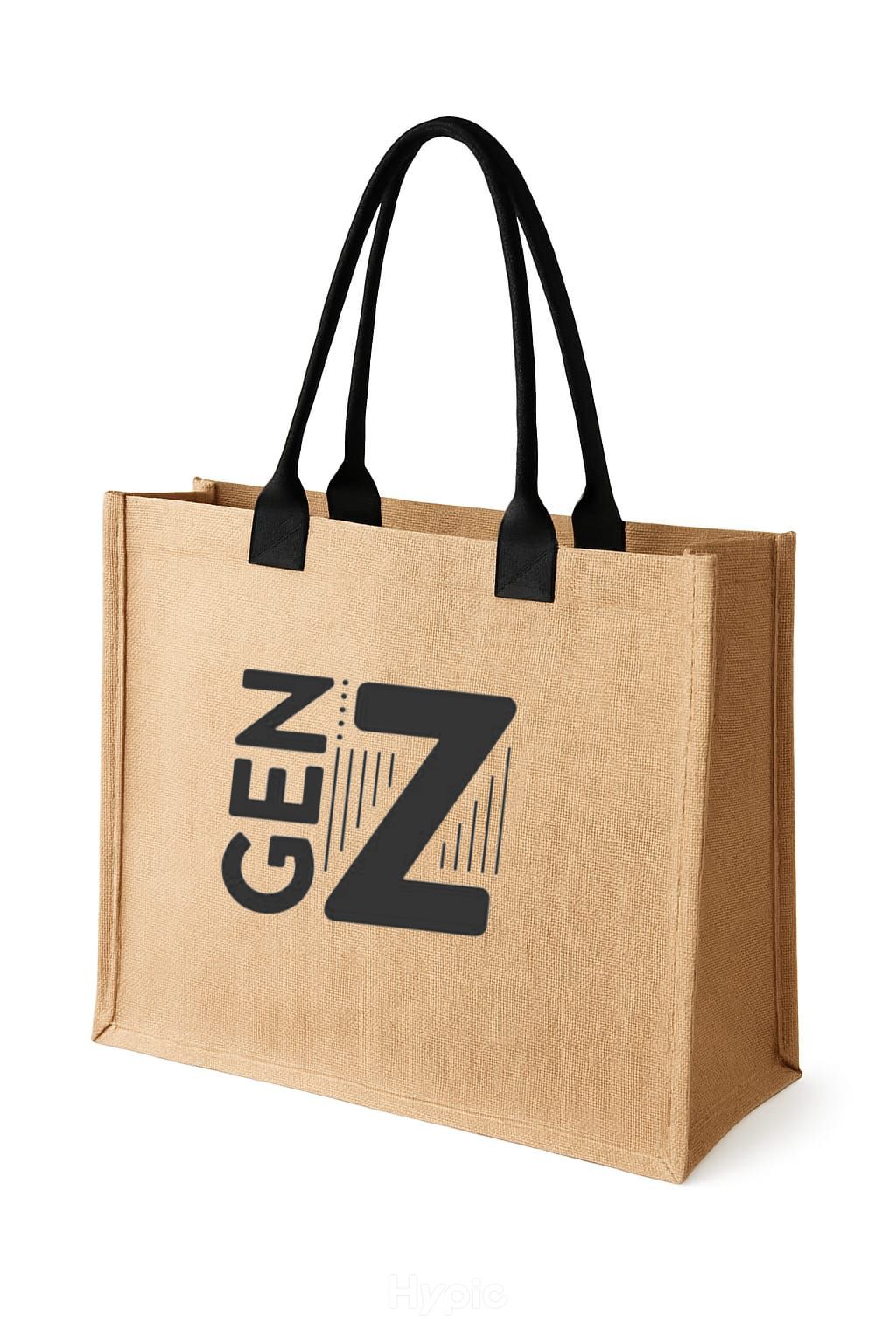 This eco-friendly jute tote bag is designed with both style and functionality in mind especially made for GEN Z . Crafted from durable natural jute fabric, it offers a sturdy structure with a spacious rectangular body that makes it perfect for everyday use. The bag features strong black woven handles for comfortable shoulder or hand carrying. Its minimalist design and neutral beige tone give it a versatile look, making it suitable for shopping, work, school, or casual outings.